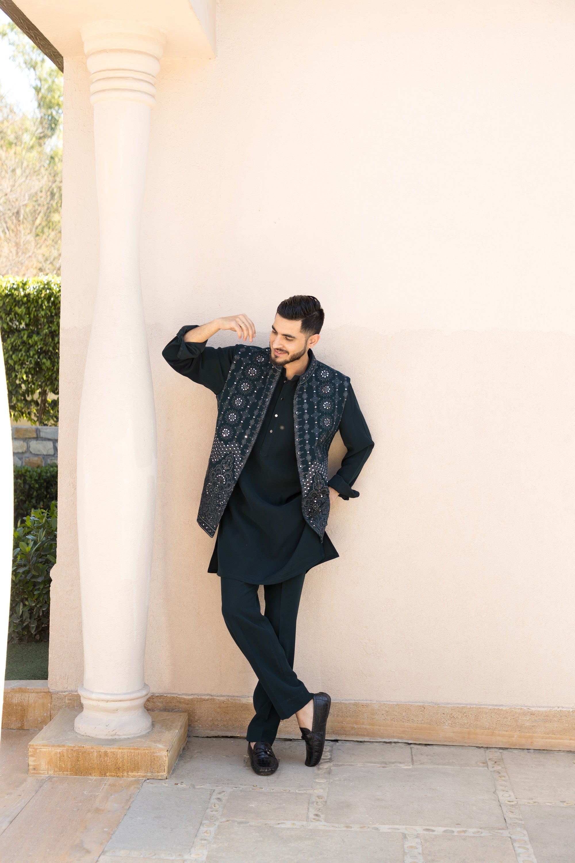The black bundi set, crafted from Italian stretch fabric