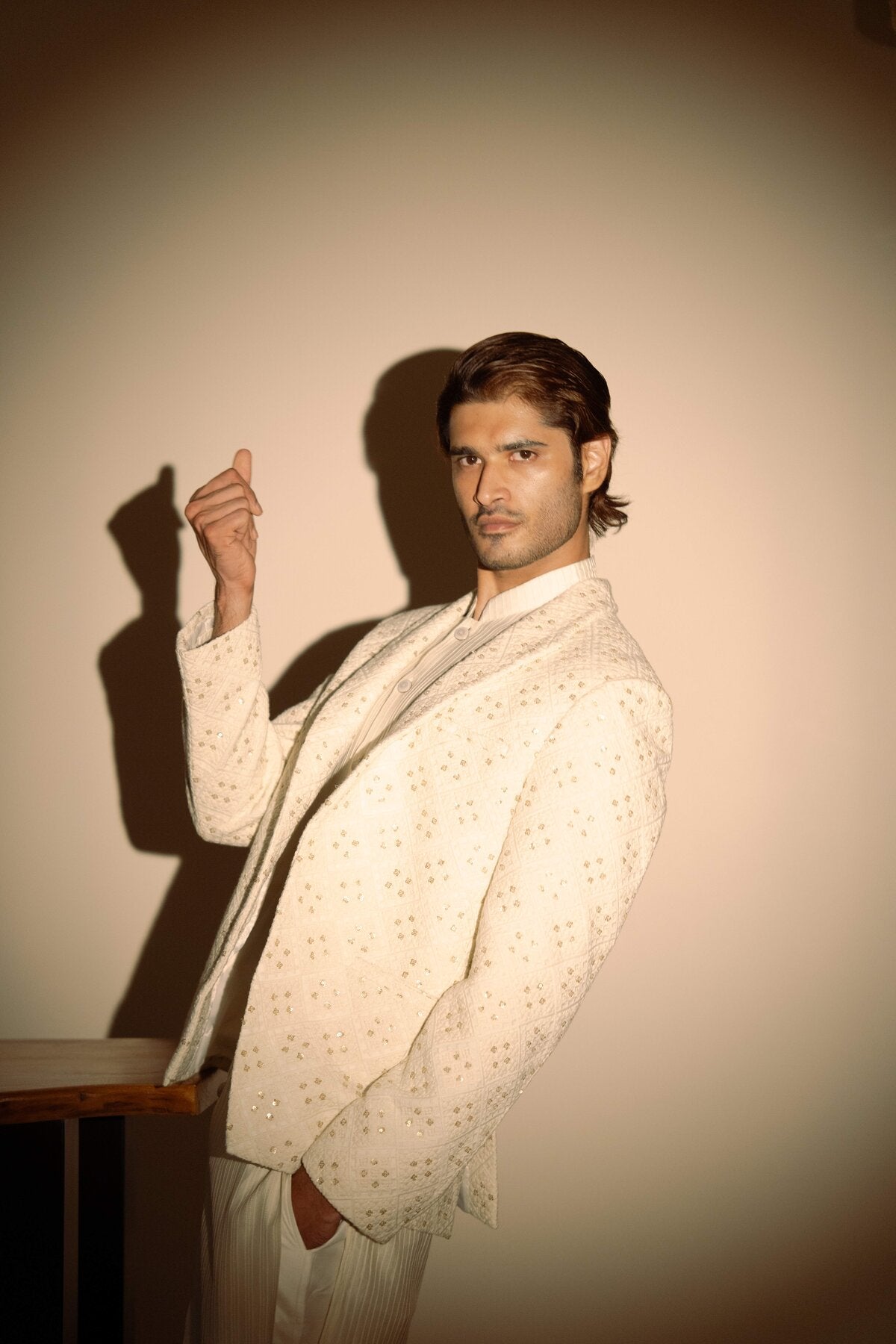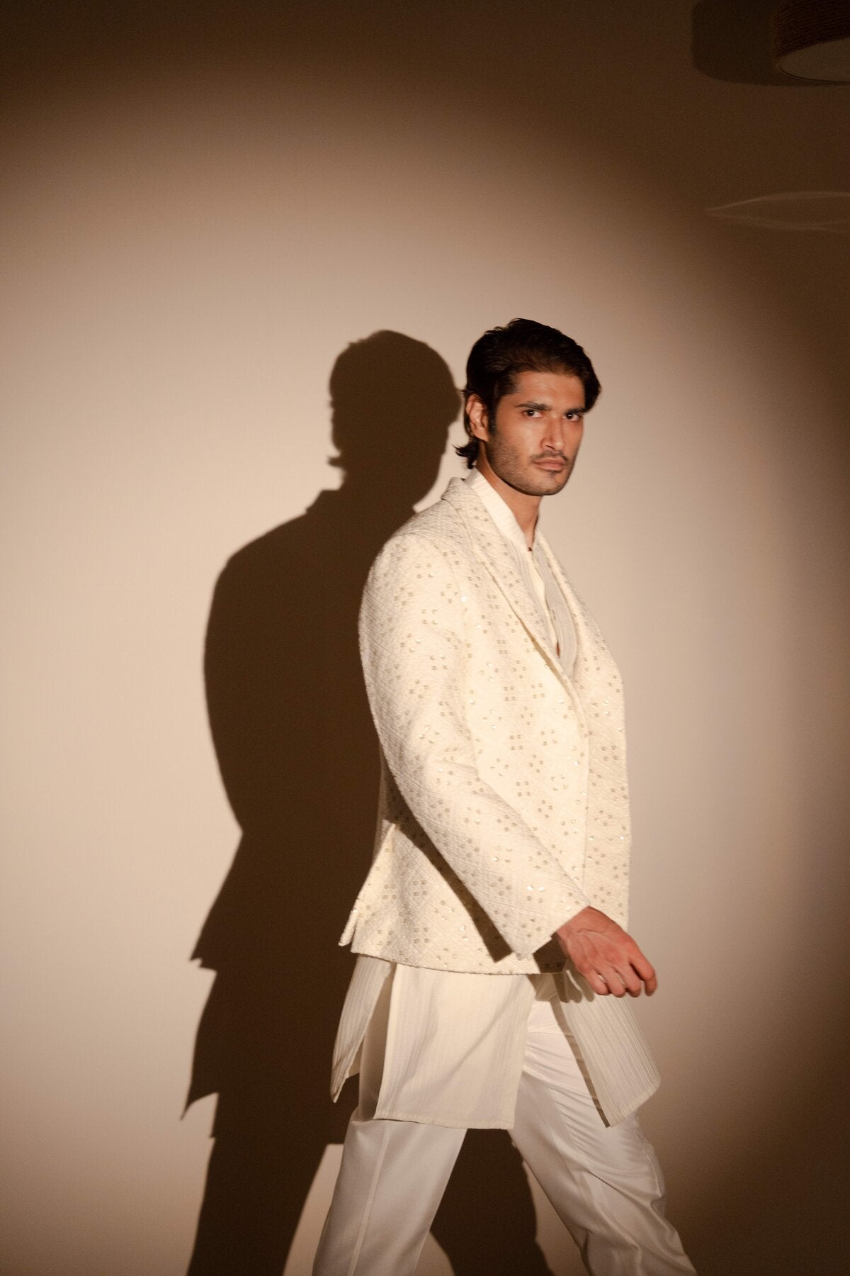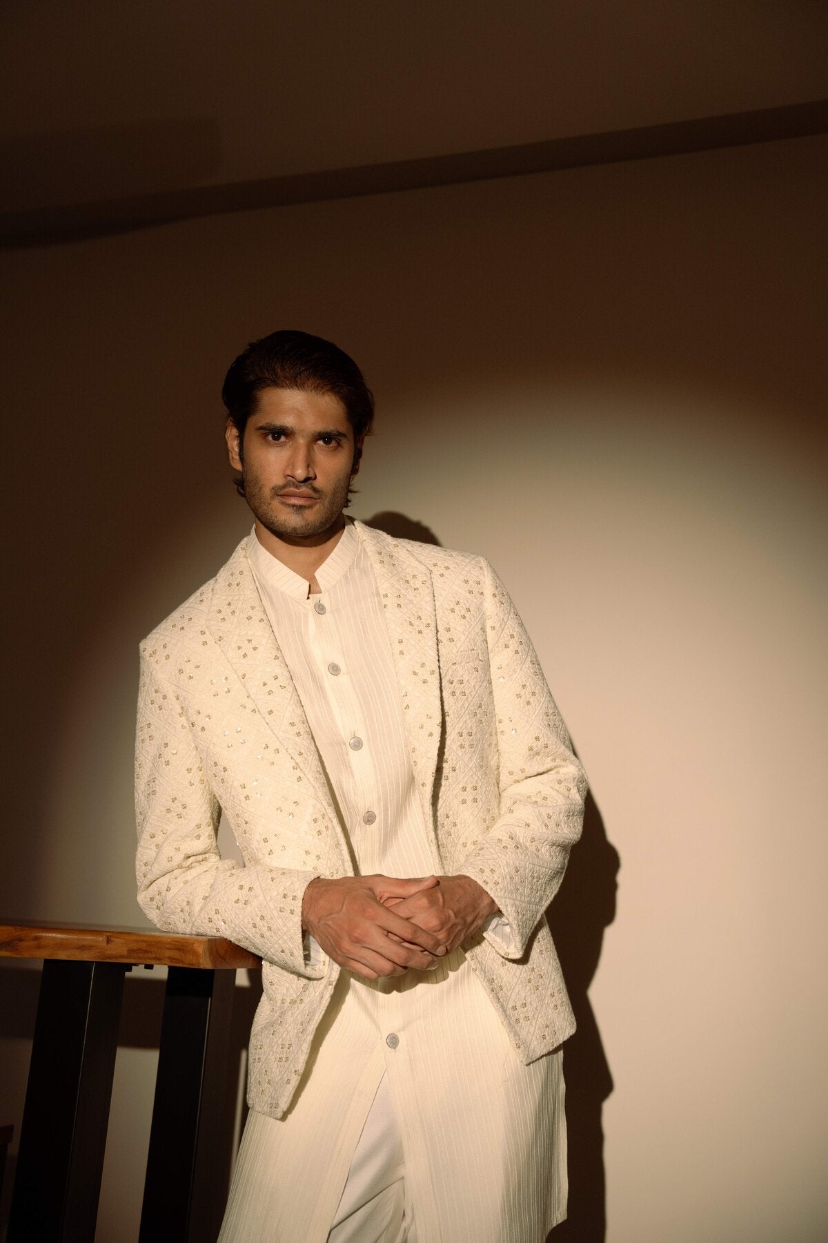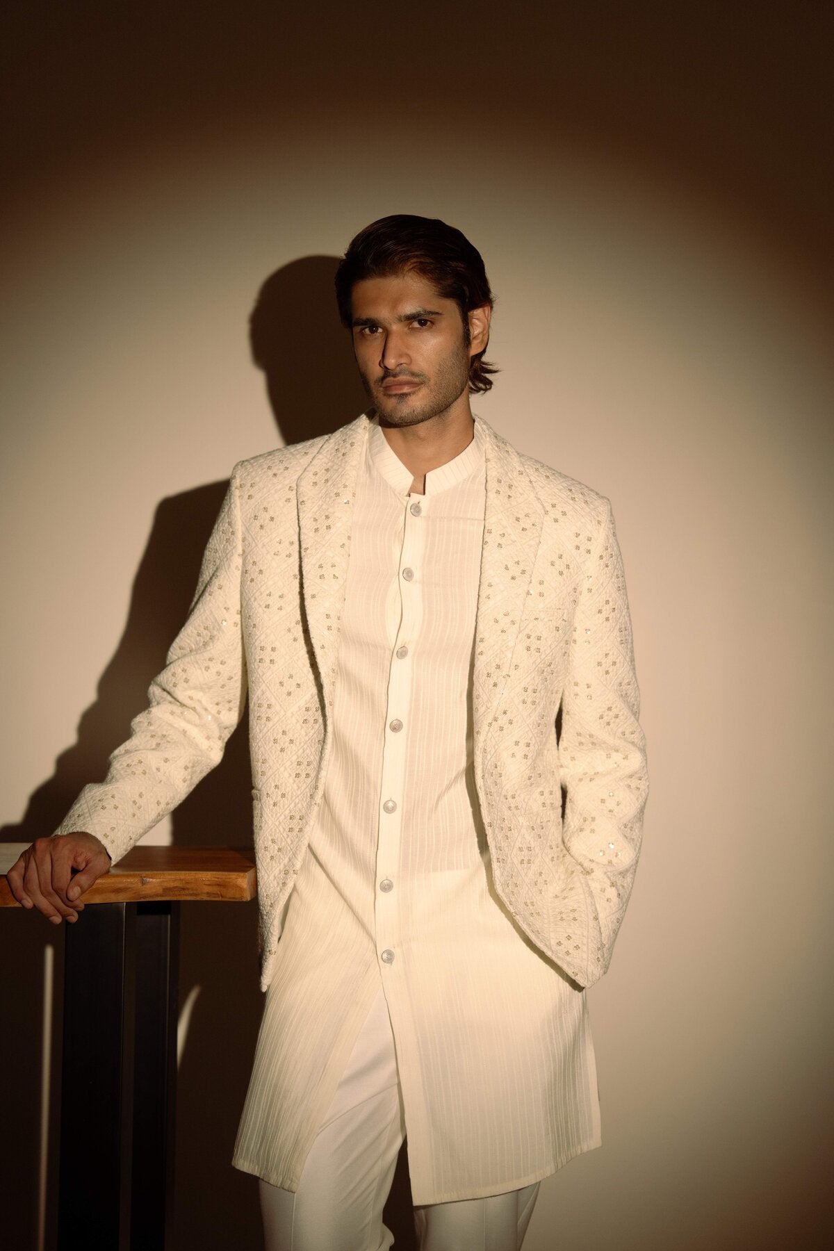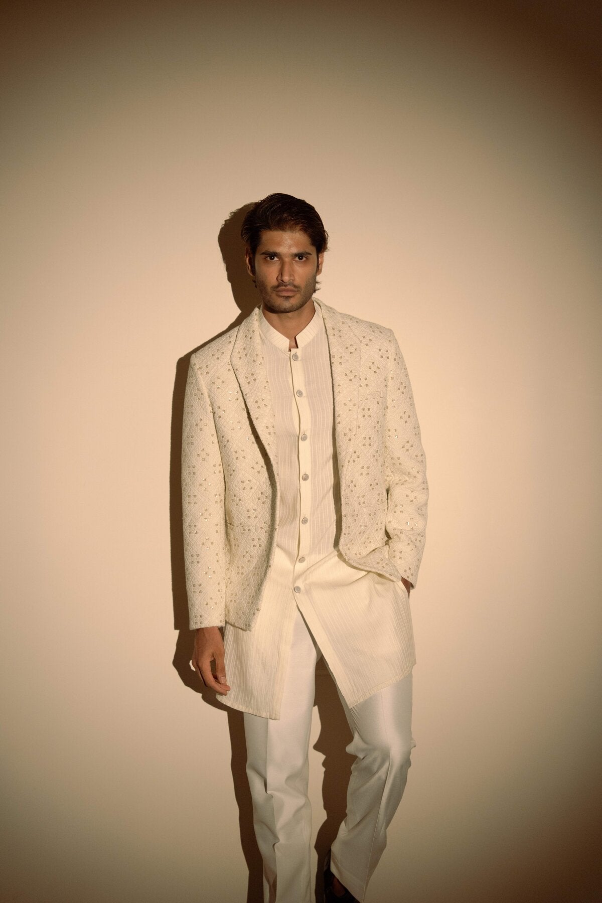 White Pintucks Kurta Set with Chikankari Jacket