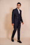 A classic double-breasted suit is a sophisticated and timeless style of formal wear that features a jacket with two parallel columns of buttons, typically six, with one or two functional buttons used for fastening. This style is characterized by its overlapping front panels, creating a polished and structured look that exudes elegance and authority