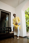 Introducing the Yellow Silk Kurta Set with Embroidered Jacket, a stunning ensemble that exudes elegance and charm. This beautiful kurta set is designed to make you look your best and leave a lasting impression.