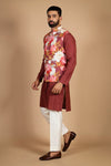 Maroon Kurta with floral jacket