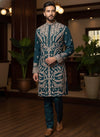 Royal Teal Italian Fabric Kurta Pyjama Set