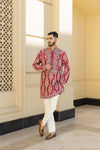 The Red embroidery kurta with pyjama, crafted from luxurious silk fabric