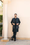 The Teal Blue bundi set, crafted from luxurious Italian stretch fabric, combines classic design with modern versatility, offering a refined, tailored silhouette that provides both style and flexibility, making it a standout choice for weddings, formal events, or sophisticated evening gatherings.